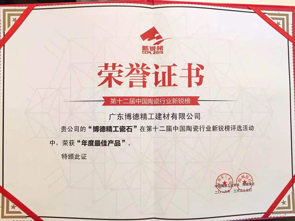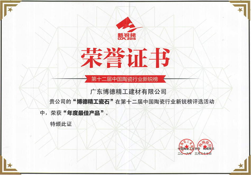 2016年 第十二屆中國陶瓷行業新銳榜年度最佳樱桃APP污片(樱桃AV黄片精工瓷石)