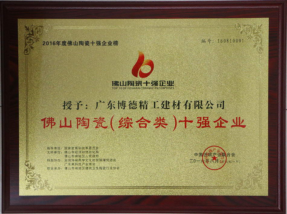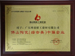 2016年度佛山陶瓷十強企業榜-佛山陶瓷(綜合類)十強企業