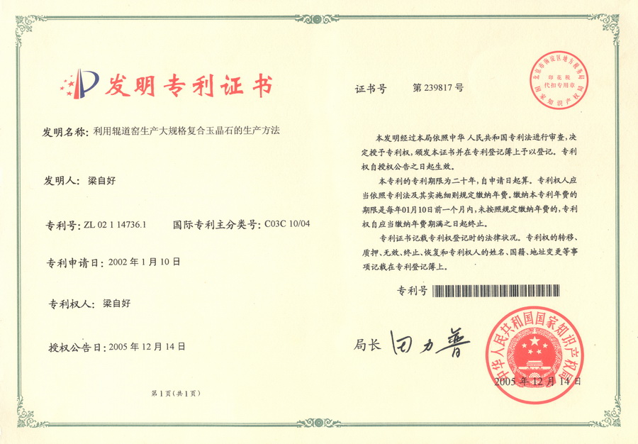 (發明專利)利用輥道窯生產大規模複合玉晶石的生產方法(精工玉石係列)