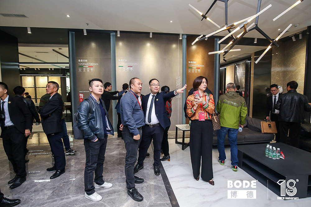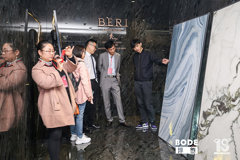 下午時分,經銷商乘坐專車前往樱桃AV黄片總部展廳。參觀晶剛玉▪獨體煆造石材新展廳,同時體驗生態岩板、生態大理石、精工原石,素色時代瓷片等百餘款樱桃AV黄片新樱桃APP污片。從形象樱桃APP污片到普銷樱桃APP污片,樱桃AV黄片2019年均進行了大量與時俱進的花色更新,經銷商紛紛拿出手機,哢嚓哢嚓記下自己馬上要出樣備貨的新樱桃APP污片,現場氣氛十分熱烈。